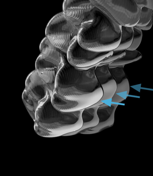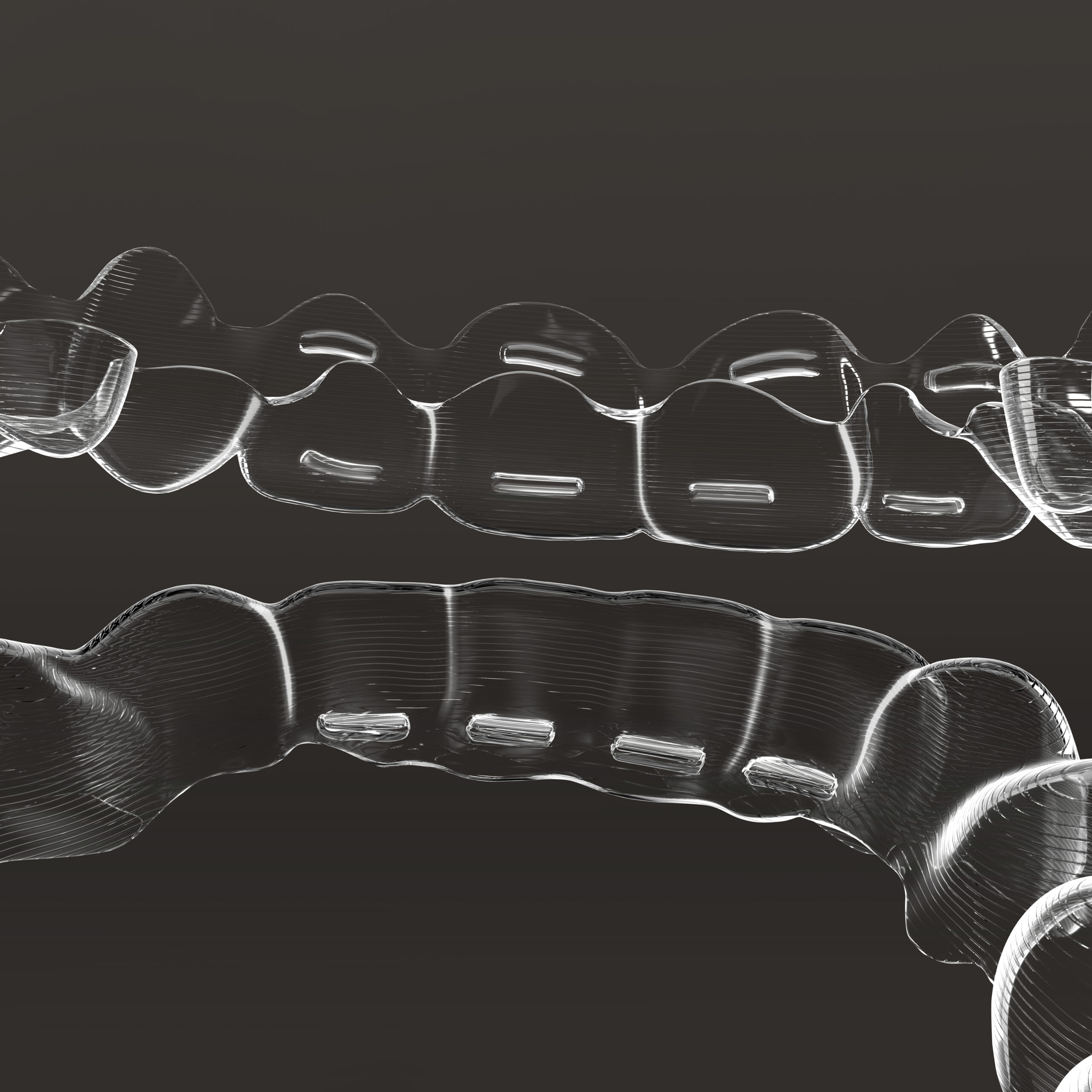 Alignery są w zasadzie niewidoczne i wykonane są z mocnego, termoplastycznego silikonu, opracowanego specjalnie na potrzeby systemu Invisalign. Alignery są dopasowane do konkretnego pacjenta, tak aby idealnie pasowały do zębów.